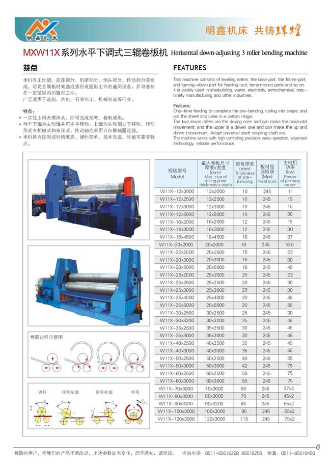 MXW11XB系列機(jī)械水平下調(diào)式三輥卷板機(jī)